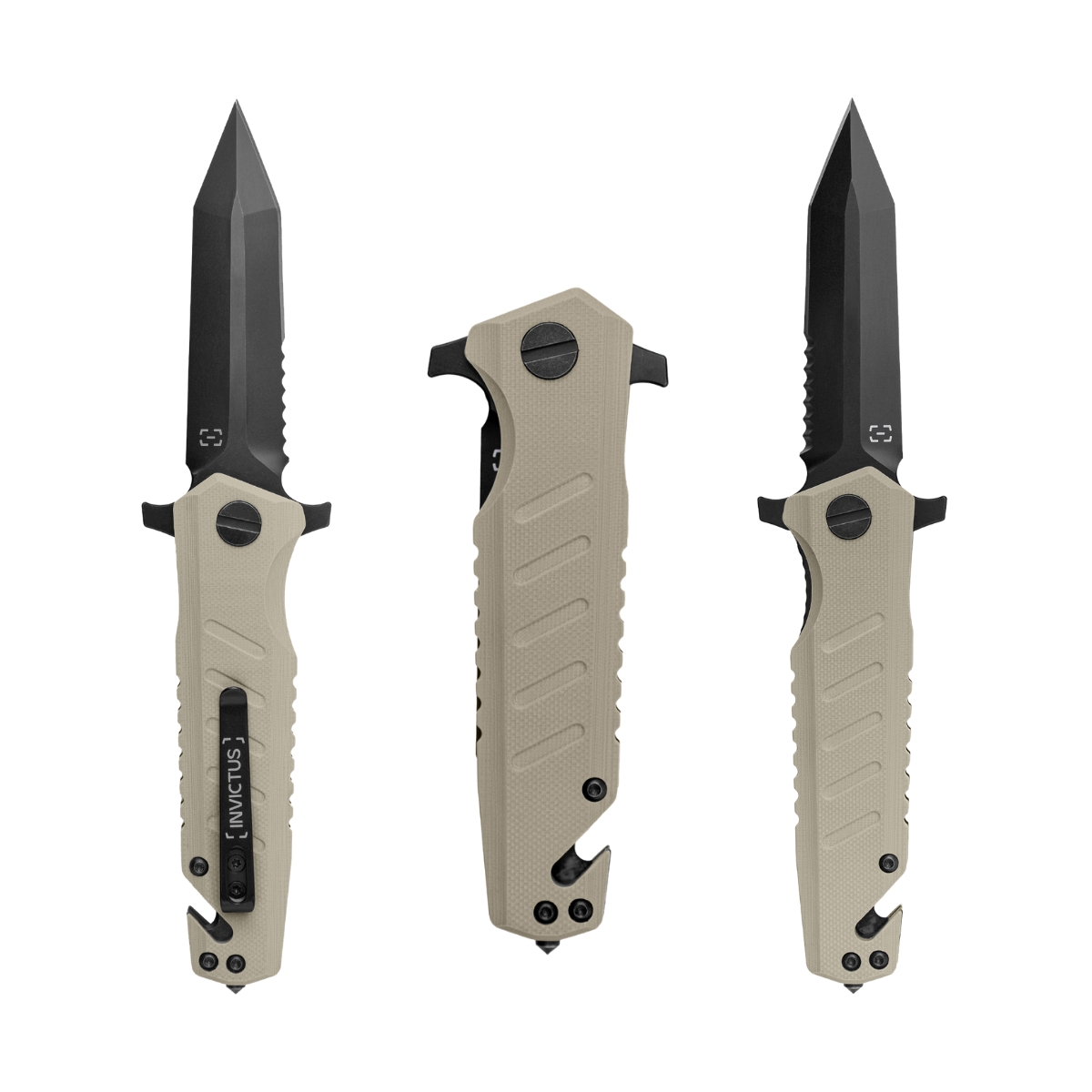 Equipado com recursos adicionais, o VENATOR conta com quebra-vidro na extremidade do cabo e corta-cinto integrado, tornando-se um verdadeiro aliado em emergências. O sistema de abertura por rolamento Ball Bearing proporciona acionamento rápido e suave, enquanto a trava Liner Lock assegura firmeza e segurança durante o uso. O cabo em fibra de vidro G10 texturizado na cor coyote garante leveza, aderência e controle superiores, mesmo em condições adversas.